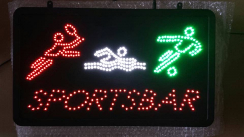 | | SPORTSBAR LED Bord Leuchtreklame LEDs Schild Bord PanelsLED Leuchtreklame SPORTSBAR (siehe Foto) Maße: ca. Länge 55cm x Höhe 34cm x 4cm Tiefe zum Aufhängen im Schaufenster oder an der Tür/ Wand geeignet (incl. Kettenhängesets) sofort betriebsbereit, ohne Rückstrahleffekt Qualität die sich auszahlt technische Daten: für 230 Volt / 50 Hz, Netzteil CE 12V, 500mA Kabel und Ein-Aus-Schalter, Standlicht LEDS blue deutscher Standard, Energieeffiezenz Klasse A sehr geringer Stromverbrauch , sehr gut lesbar bis 100m schwarzer stabiler ABS-Rahmen im geschlossenen System zur Innananwendung das ist die neue Generation von Leuchtmittel, sehr geringer Stromverbrauch Für Ihr Gewerbe zur Umsatzsteigerung, ideal auch für Tageslicht sowie bei Nacht geeignet NEUWARE/ OVP , incl. Rechnung / MwSt + Garantie | |